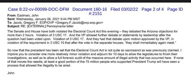 But the documents go into greater detail about how Eastman — the drafter of memos for the campaign about how to fight certification of the election results — tried to court Pence as well as the resistance he faced.