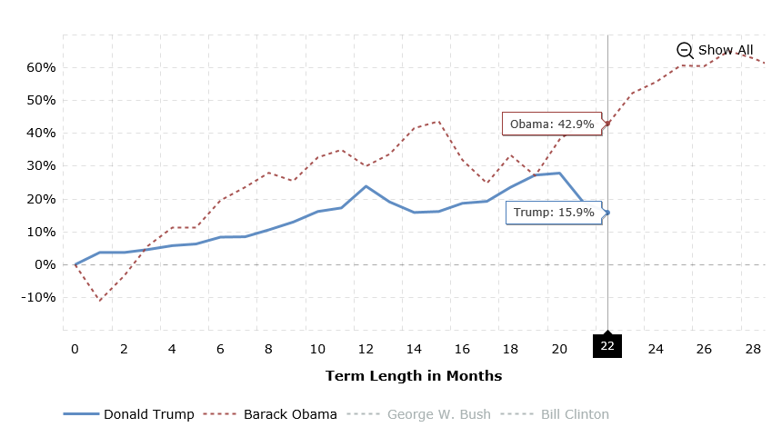 So how much MAGA are we getting in the stock market vs our last president you ask?